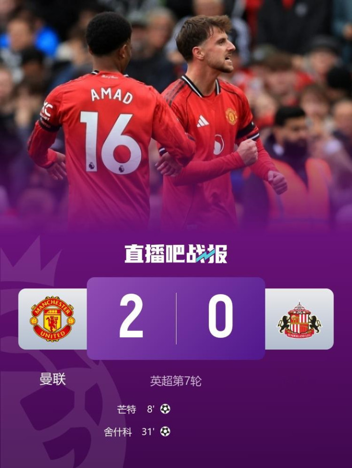 赛季第3胜!曼联2-0击败桑德兰芒特、舍什科建功拉门斯首秀惊艳