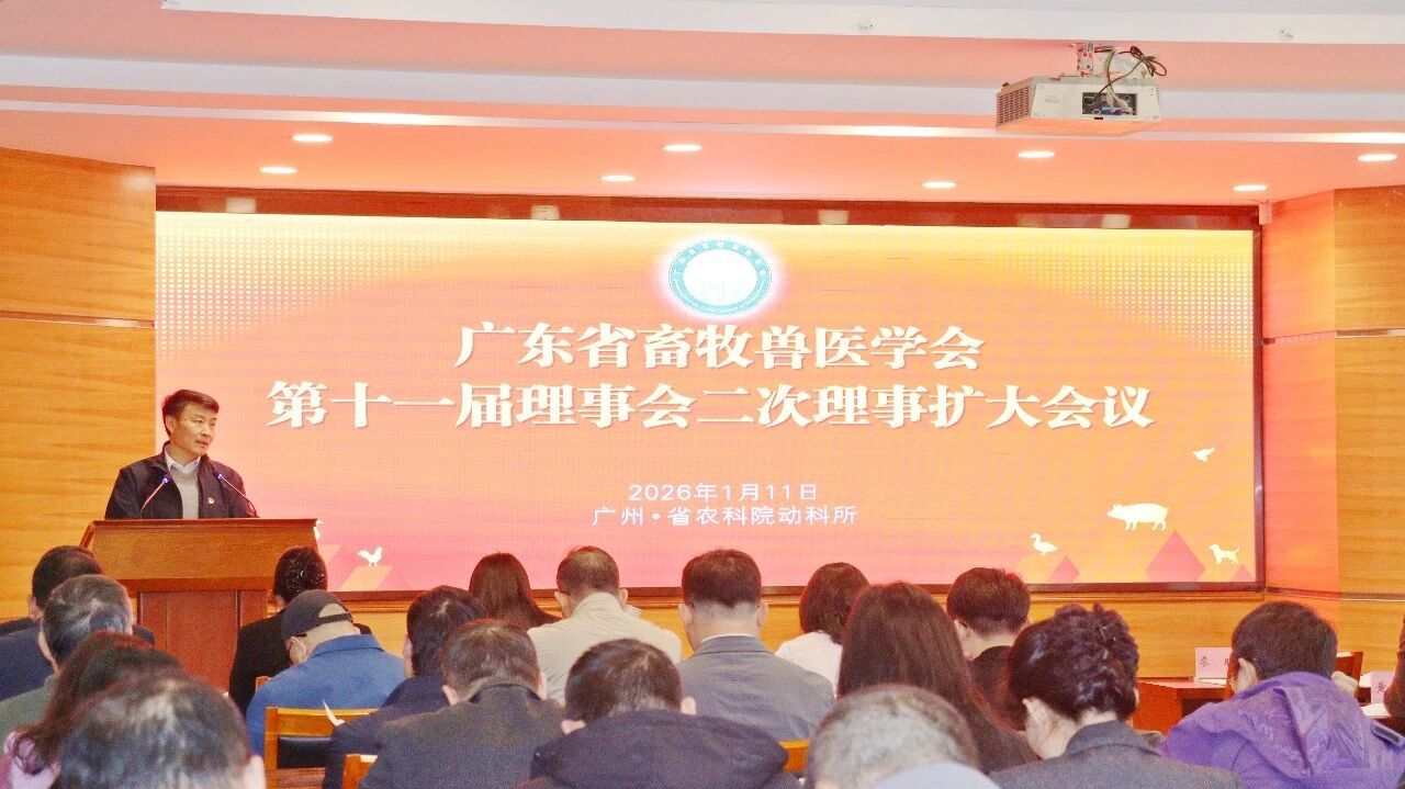 2026年1月11日,广东省畜牧兽医学会第十一届理事会二次理事(扩大)会议在广州成功召开。会议以“总结过往成效、凝聚发展共识、谋划未来路径”为主题,全面回顾了学会2025年度工作,并规划了新一年的发展方向。学会总顾问廖明教授、理事会及监事会成员、各分会代表、秘书处工作人员等80余人参加会议。