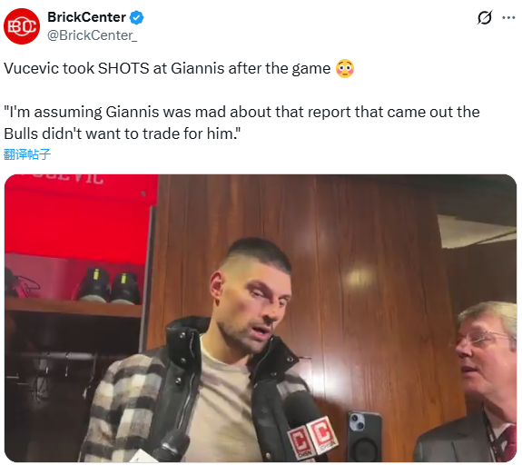 对此,公牛球员武切维奇调侃道:通常比赛快结束的时候,你只会运球耗时间。我猜扬尼斯(字母哥)是因为之前有报道称公牛队不会交易得到他而生气,他想要借此证明自己。