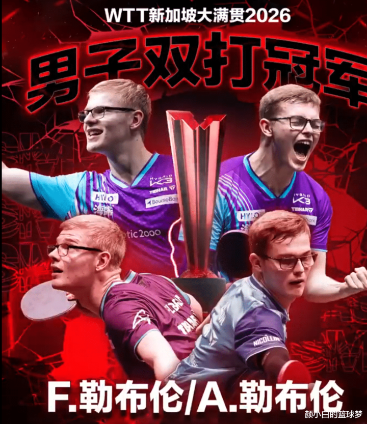 北京时间2月28日晚,WTT新加坡大满贯男双决赛,F-勒布伦/A-勒布伦3-0林诗栋/黄友政夺冠,三局比分:【11-6,11-6,11-7】。林诗栋在新加坡大满贯上等于是连败小勒,因为在1/4决赛上,林诗栋也是输给小勒布伦。