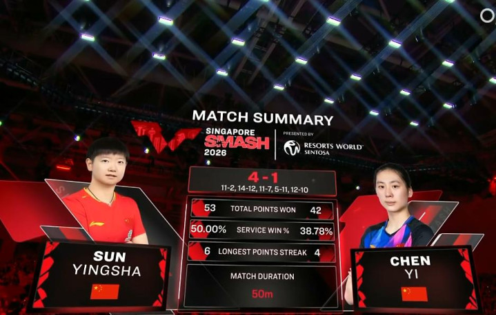 2026年3月1号的新加坡大满贯女单半决赛,世界第一孙颖莎球拍挥起挥落的,将世界第八号种子陈熠,给以4比1的成绩完美击败,顺利晋级到今晚的女单总决赛中,与自己队友王曼昱展开新一轮世界大PK。