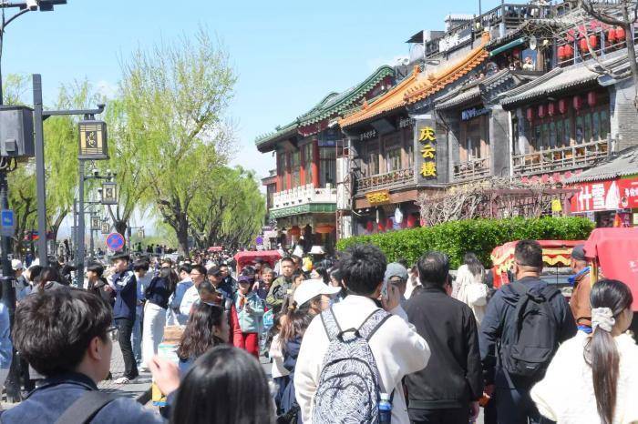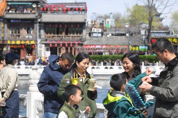 4月5日清明假期,北京气温渐暖,大风天气并没有影响游人踏青,在北京什刹海景区,游人如织享受假期。